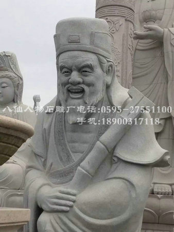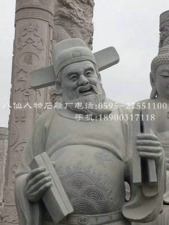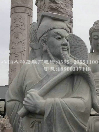 呂洞賓:頭戴瓦棱帽,攀身披道袍,腰系絲帶。身背青鋒劍,手執(zhí)拂塵,腳穿云頭靴,面目方正,留三綹長須,于道貌岸然中略帶幾分風(fēng)流相。