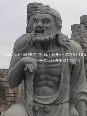 鐵拐李:蓬頭垢面,短而卷曲的絡(luò)腮胡子,瘦骨嶙峋,跛足拄杖,身背葫蘆,衣飾不整,似乞丐像。