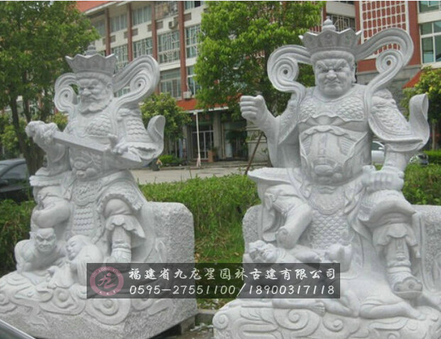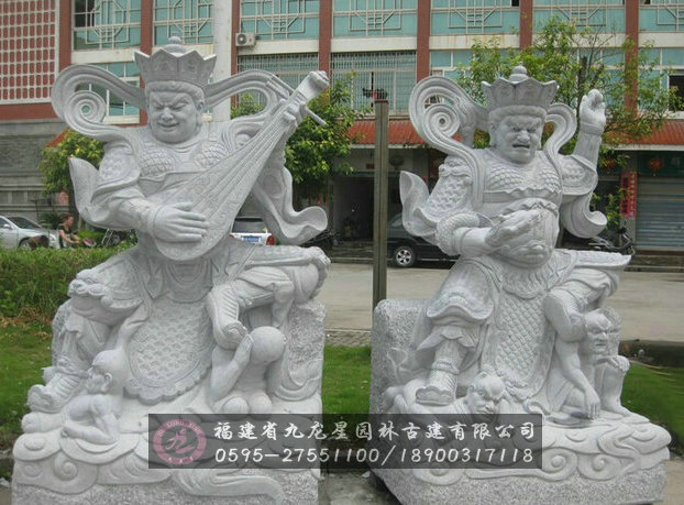 四大天王是佛教的護(hù)法,俗稱“四大金剛”是錯(cuò)誤的。應(yīng)該叫護(hù)世四天王,是佛教二十諸天中的四位天神,位于娑婆欲界第一重天,第一重天又叫四天王天位于須彌山腰,塑像通常分列在佛寺的第一重殿的兩側(cè),天王殿因此得名。相傳住在須彌山山腰的四座山峰上。