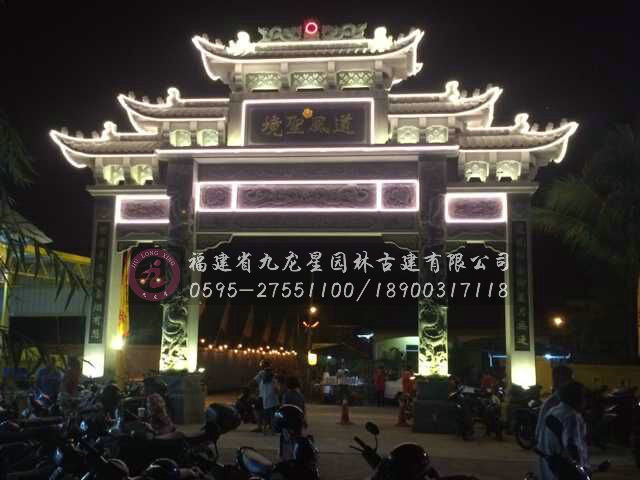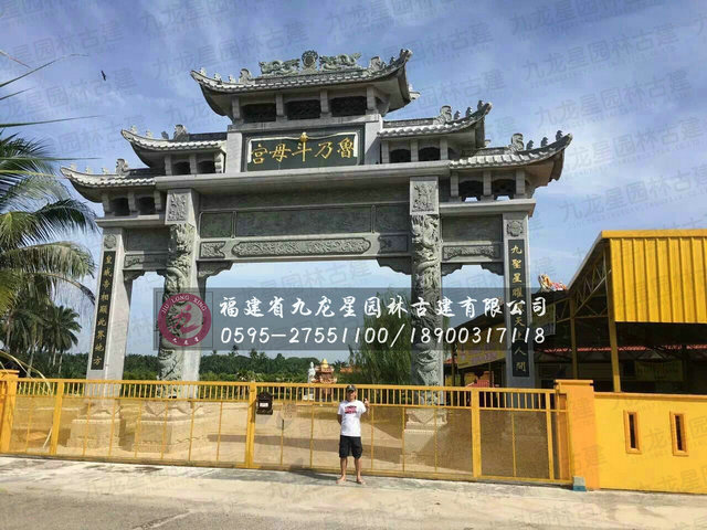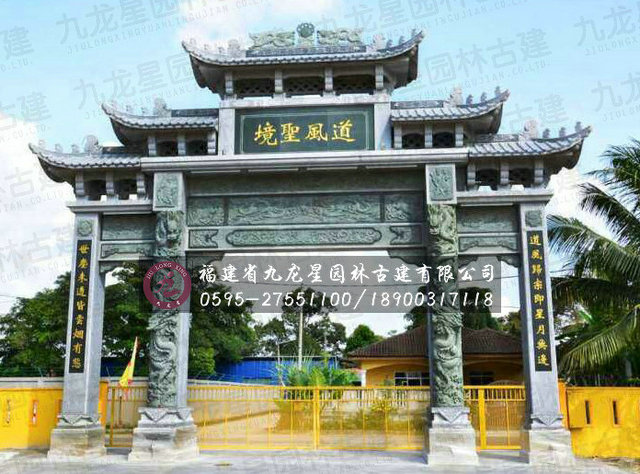 馬來(lái)西亞青石雕刻三門四柱石牌坊效果圖