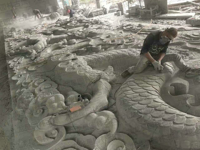 (浮雕雕刻之前需要在石材上繪出相應(yīng)圖案)