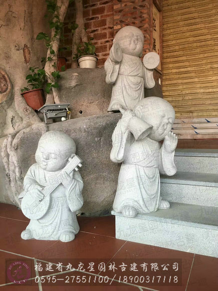 萌翻看客的一組小沙彌石雕像
