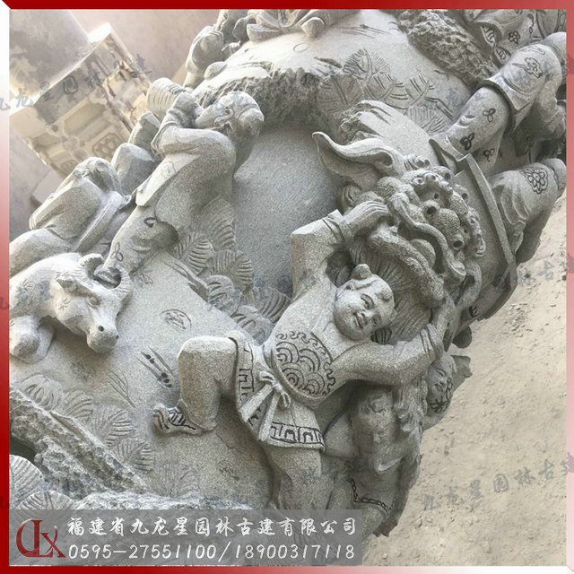 百子柱石雕加工局部細(xì)節(jié)圖來源于九龍星園林古建。