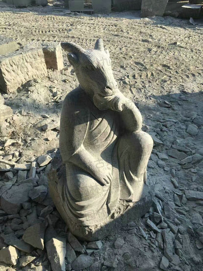 G633#高80cm獸首人身十二生肖雕塑完工