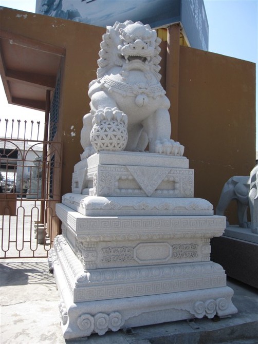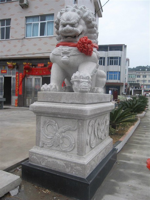 作為我國歷史上封建主義社會(huì)發(fā)展后期階段的元明清三代。其中元朝的皇室帝王不提倡象生儀衛(wèi),所以也就沒有了陵墓石獅這么一說。但是中國歷來對(duì)佛道等宗教信仰的重視,為石獅的應(yīng)用也創(chuàng)造了有利的條件。而明朝石獅子,特別考究。在宮殿、府邸等一些建筑群中,石獅子被雕刻得莊重威嚴(yán),體型巨大而且莊重。作為皇家的石獅,更加講究,從取材到雕刻,再到裝飾無不體現(xiàn)出皇家的威儀。這時(shí)候的民間石獅子則顯得多彩多樣,活潑生動(dòng),充滿了民間生活的元素。