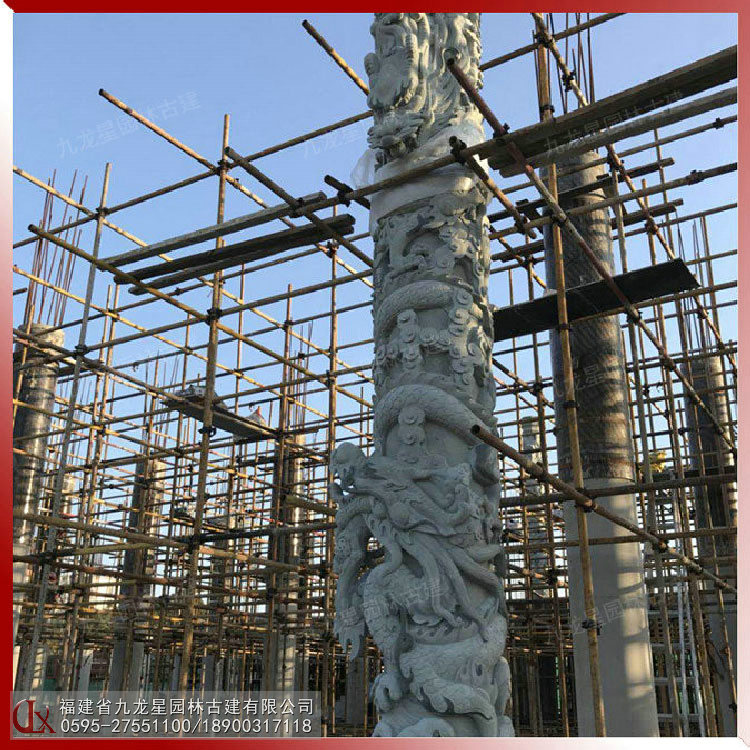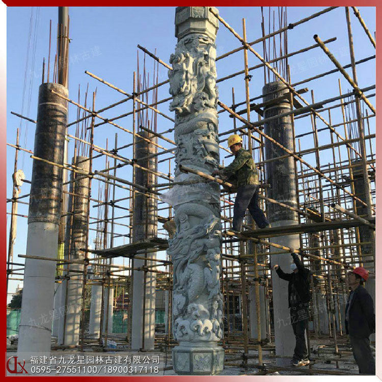青石雕龍柱,是由天然青石雕刻制作的石雕龍柱,寺廟用在裝飾的石雕龍柱,通常會選青石雕龍柱。青石的顏色古香古色有著古韻的氣息,青石雕龍柱成品顏色莊嚴、肅穆、穩重,能夠很好的融入寺廟古建環境中,人們經??吹角嗍庸ざ傻凝堉X得很有懷舊的感覺。